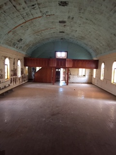 The wooden doors are secured by a heavy can of some sort. Long gone are any locks or knobs that worked. Move the can out of the way and the doors will creak open with arthritic moans. You step inside and you’ll find a guestbook, an old notebook of the school variety, an interesting and inexplicable item given the condition of the church. The second thing you’ll see is a hand-printed sign tacked to a wooden pillar of the church that lets you know–in no uncertain terms–that the church is now private property and if you’re up to no good, then move on. That sign also raises as many questions as the guestbook. I’m told that the guestbook gets a remarkable number of signatures. As to the people who are up to no good, there is no ascertainable number.