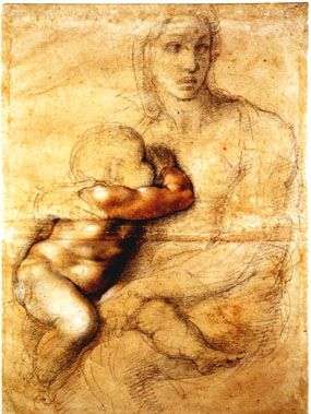 When my mind wanders, as it did when I saw that little boy hugging his mom, I let it go, like a grasshopper jumping from green plant to green plant. Sometimes you just want to see the path it will take. And as I contemplated that child in his mother’s arms, I thought of the many paintings of the child Jesus in his mother’s arms—it seems every Renaissance painter earned his chops doing one—the Madonna and child showing us that hugs are as holy as they are healthy. I specifically thought of Michelangelo’s pencil drawing in which Mary, with the child at her bosom, looks into the distance, as if she can see the cross already, and foreseeing how she will hug the body of her dead son to her bosom for the last time.