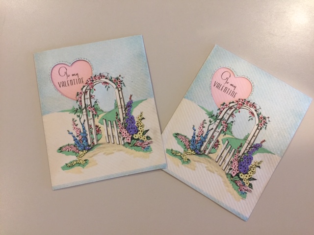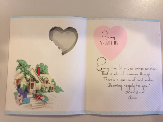 At the time, my uncle was a month shy of 23-years-old, and his brothers were 13-years-old and 11-years-old. Although the cards are now 78-years-old, the bright colors have not dulled, and the ink of his signature is still legible. The printed text inside the cards read: “To my Valentine, Every thought of you brings sunshine, that is why, all seasons through, there’s a garden of good wishes, blooming happily for you!” The cards are signed, “Your Bud, Rein.”