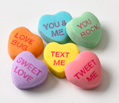Late in the game, Sweethearts added new sayings each year, reflecting the changes in culture as well as the changes in the way we talked. In many ways, these changes charted the course of technology, carrying messages such as “Fax Me,” then “Call Me,” and now “Text Me.” The company making the candy regularly received suggestions for new sayings, some of which made it onto the candy.
