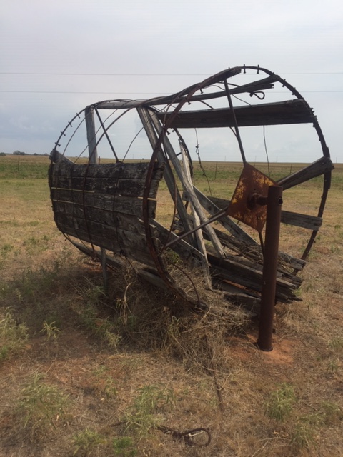 The slide is rusty and the swing set is without swings. The barge isn’t in the pond anymore, although the cable where the slip slide went across the stock tank still swings lazily in the air, when there is a breeze. Two of the tanks are bone dry, which says we need rain. We walked around the premises, on the lookout for rattlesnakes, since the place belongs now to them, and not to us. As elsewhere in the world, little is the same in Mansfield Park, little the way we remembered it when we went there as kids.