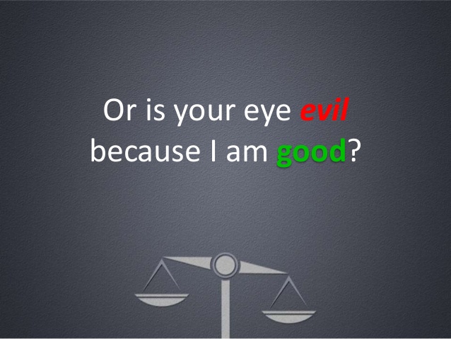 Significantly, Biblical commentators point to the fact that some early translations of the text pose the vineyard owner’s question in a slightly different way, the question now being, “Is your eye evil,” an allusion to envy, which always looks at what another person has, the phrase “the evil eye” continuing to the present day, denoting someone who wishes ill fortune upon another because of what they have, their evil eye taking in what the other has, their hearts filling with envy.