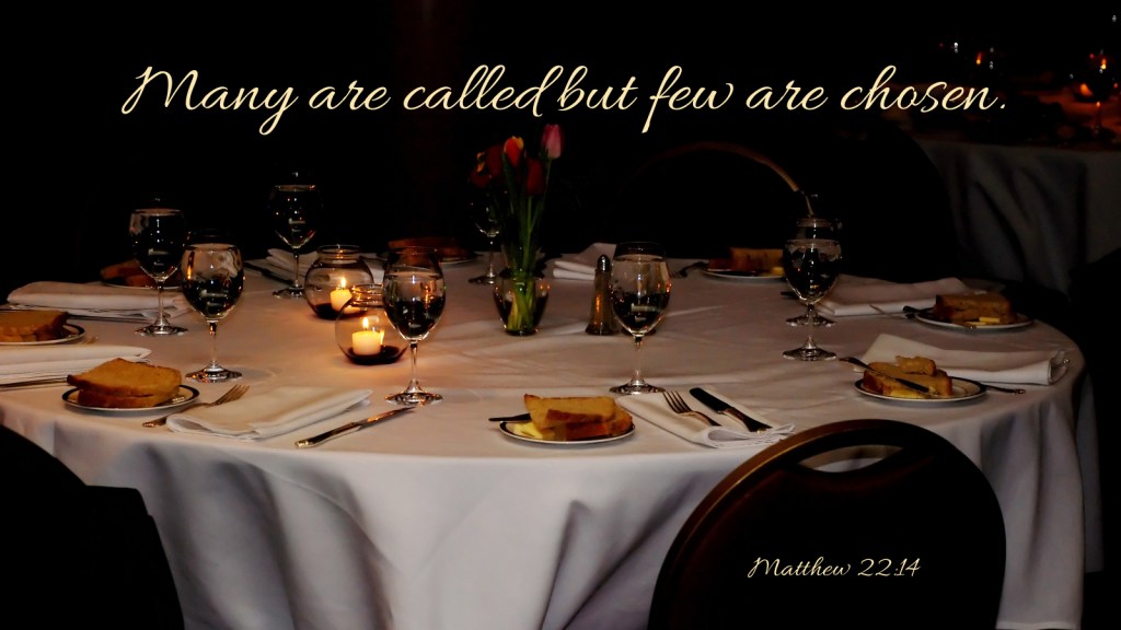 These many years since the telling of the story of the wedding banquet, the situation remains much the same as it did, an invitation to participate in God’s life still open to whomever, but, as the Galilean Rabbi said when concluding the story, “Many are invited, but few are chosen,” a reminder to later listeners that the decision not to attend is still made by many others, ourselves perhaps included, offering excuse after excuse for our not wanting to be a part of God’s life.