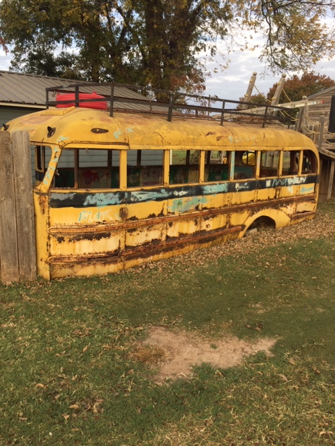 When Daddy put farming behind him and the pasture was turned over to other people, the bus eventually found its way back to town, hitched to a pick-up truck to make the two mile trek, and placed in my Dad’s junkyard, alongside other old vehicles and outdated trucks, a sad demotion for this erstwhile school bus turned bunk house turned clubhouse. I am sure it was greatly embarrassing to be seen in such company as that junkyard contained.